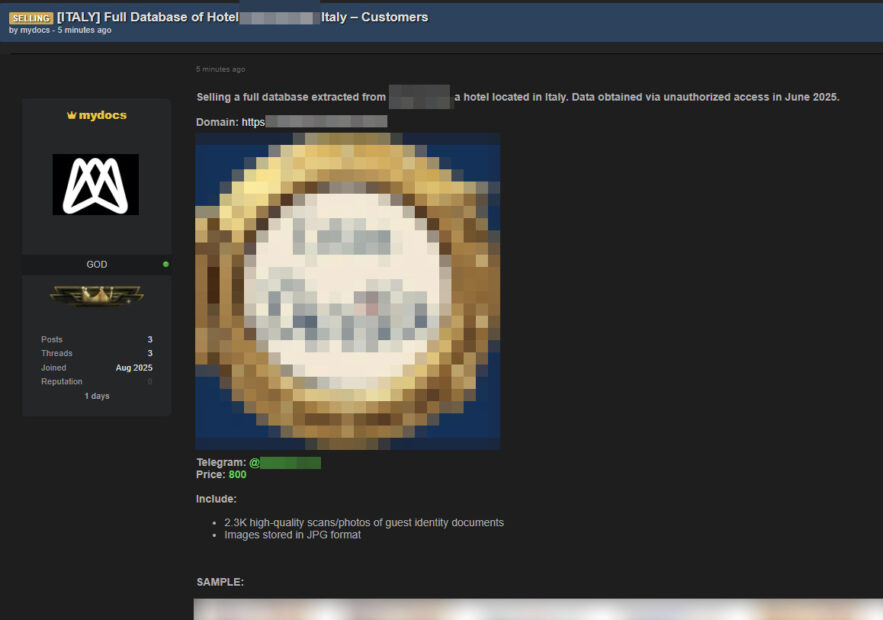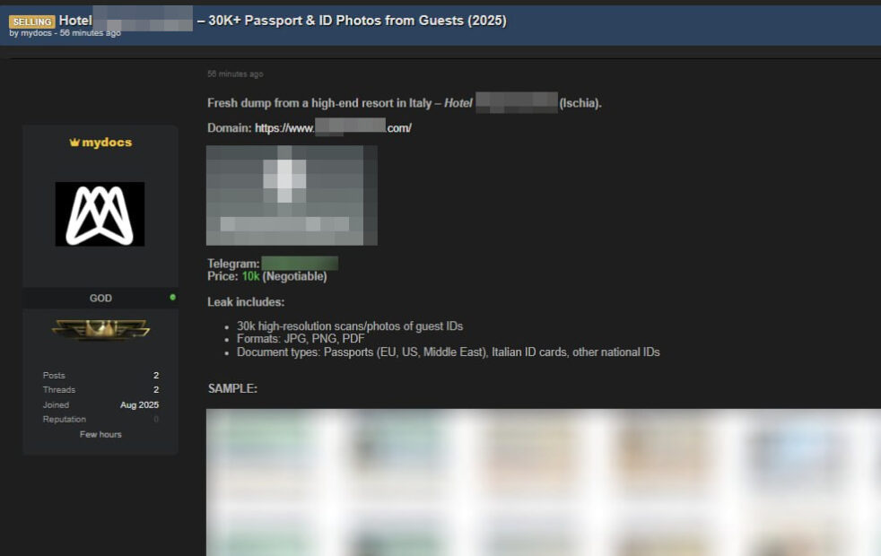 Ecco, a quanto pare non sempre la gestione dei nostri documenti viene fatta con le dovute cautele, ad esempio cancellandoli dopo la registrazione, considerando che nei giorni scorsi ci sono state ben 3 rivendicazioni di altrettanti attacchi a strutture ricettive italiane (a quanto pare, parliamo di tre strutture ricettive locate in Venezia, Ischia e Cervia).