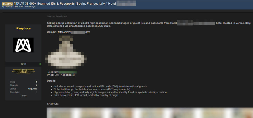 Secondo quando riportato negli annunci pubblicati su un forum specializzato dal medesimo utente, “mydocs“, e ripresi dalla stampa di settore, parliamo di circa 70200 documenti di identità (passaporti, carte di identità, patenti) degli ospiti delle strutture.