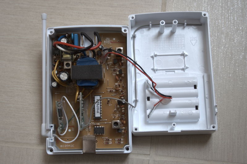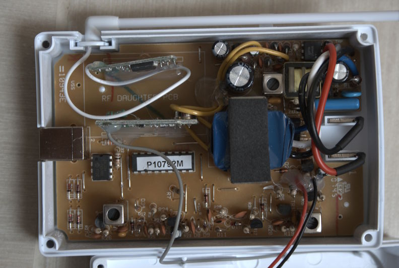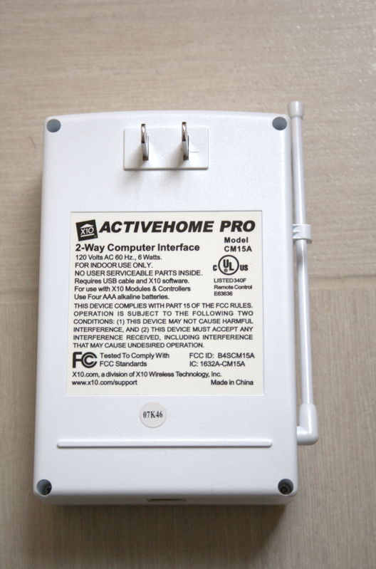 Come potete notare, la presa elettrica è per le spine USA a 110V. L’antennina dovrebbe servire per ricevere e trasmettere i segnali X10: per un’analisi del segnale RF consultate questa pagina.