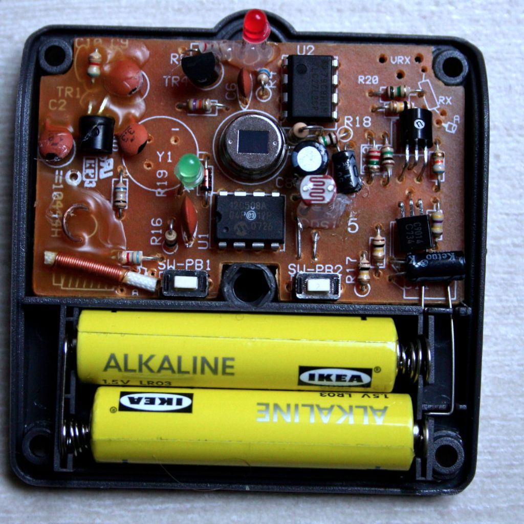 Diamo un’occhiata all’interno del CM19A. Il circuito è abbastanza semplice: un microprocessore ed uno stadio RF. Anche la componentistica non è certo di ultima generazione !