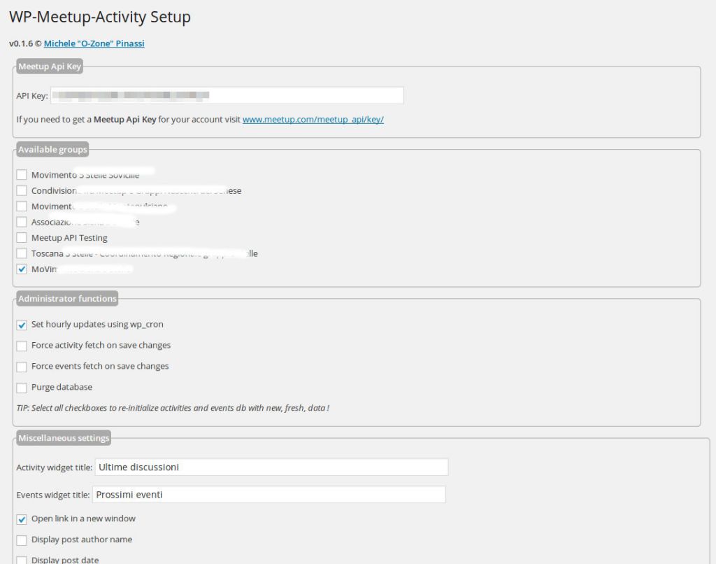 Avendo la necessità di mostrare gli eventi e le discussioni che avvengono sulla nostra piattaforma Meetup anche sul sito web, basato su WordPress, ho sviluppato un semplice plugin che periodicamente controllasse la presenza di nuove discussioni ed eventi, visualizzandoli via “widget” sul sito web: