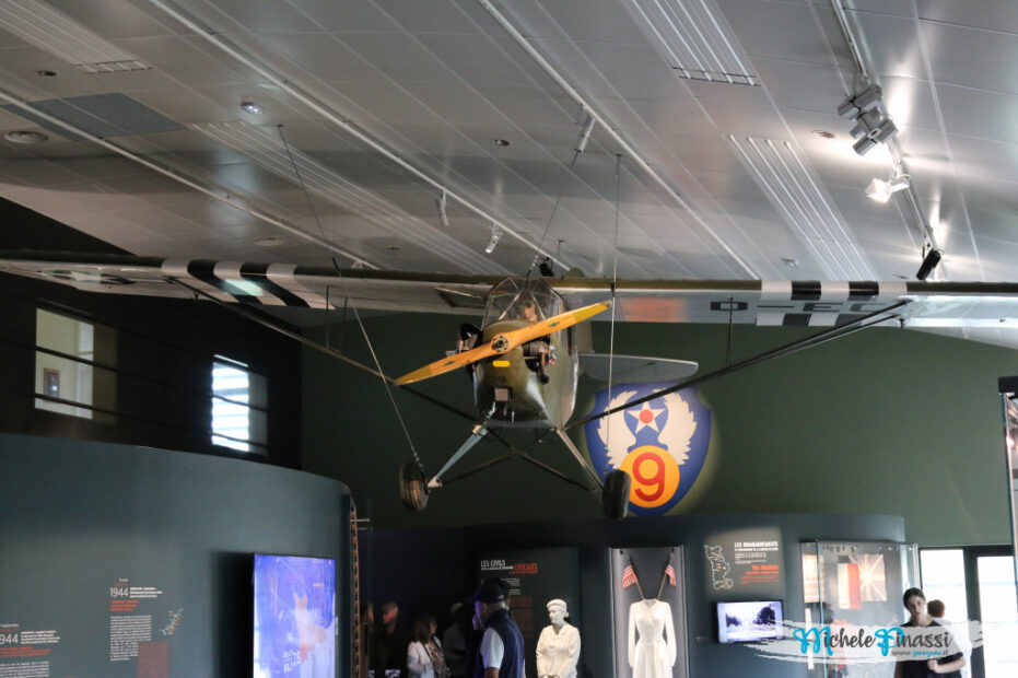 Davanti, a pochi passi, l’ingresso del Museo dell’Airborne, che consiglio vivamente di visitare. Composto da 5 padiglioni a tema, è possibile immergersi a pieno titolo nell’esperienza delle truppe aviotrasportate attraverso una simulazione audiovideo immersiva piuttosto ben fatta. Ben spiegato anche il ruolo delle truppe paracadutiste per il successo della liberazione e delle innovative soluzioni tecnologiche utilizzate per l’occasione. Una bella collezione di reperti originali, tra cui un aereo C-47 e un WACO.