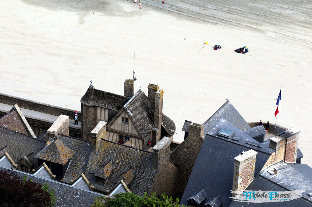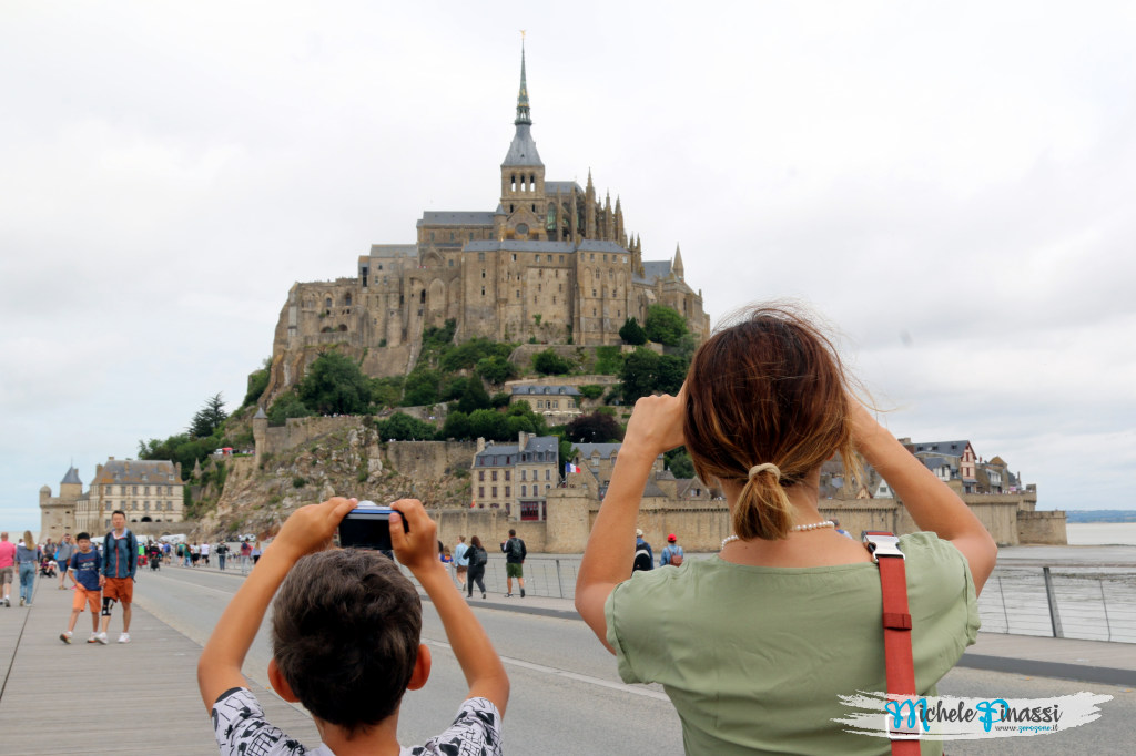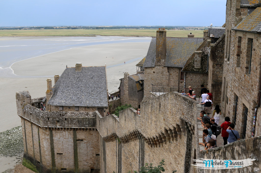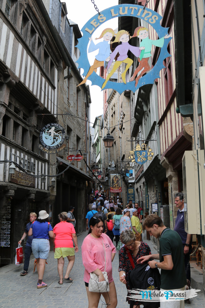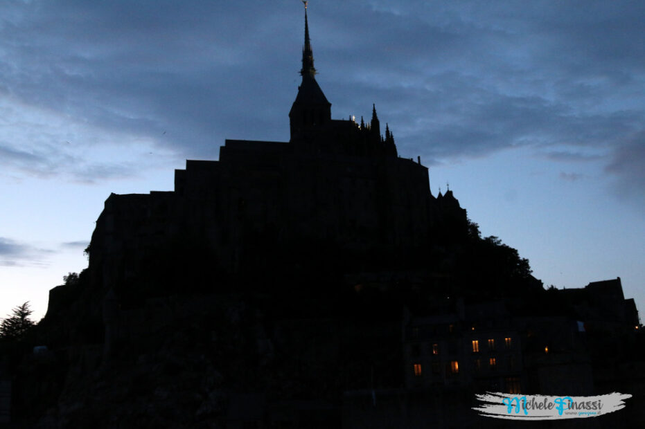 Mont-Saint-Michel è un luogo molto turistico. Il turismo di massa si concentra soprattutto nelle ore della mattina e del pomeriggio. La sera è uno dei momenti a mio parere migliori per visitare il borgo, nel silenzio del mare e senza le chiasose frotte di turisti che affollano i negozi di souvenir lì presenti. Essendo restati qui per la notte, siamo tornati al borgo anche dopo cena, gustando uno scenario del tutto diverso e molto più affascinante di quello pomeridiano.