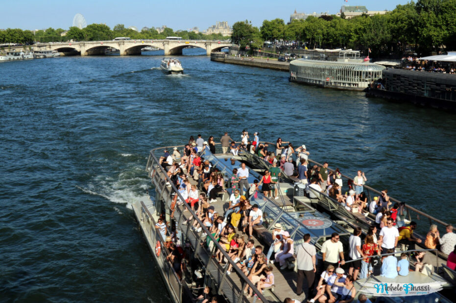 L’imponente Torre Eiffel fa sempre un certo effetto, anche se non era la prima volta che la vedevamo: una imponente struttura di acciaio che svetta, con i suoi 350 metri d’altezza, sui cieli sopra Parigi. Da qualche anno, per motivi di sicurezza, tutta la base della torre è chiusa da un recinto a cui si accede dopo controlli di sicurezza (ci faremo l’abitudine…) e chiaramente per salire sulla torre serve il biglietto. Fortuna ha voluto che arrivassimo in un momento poco affollato e siamo riusciti, con pochissima fila, a salire fin sulla sommità (27,50€ gli adulti, 6,90€ i bambini). Tuttavia, non fate come noi e non sfidate la sorte: prenotate la vostra visita acquistando i biglietti online sul sito ufficiale: www.toureiffel.paris/it