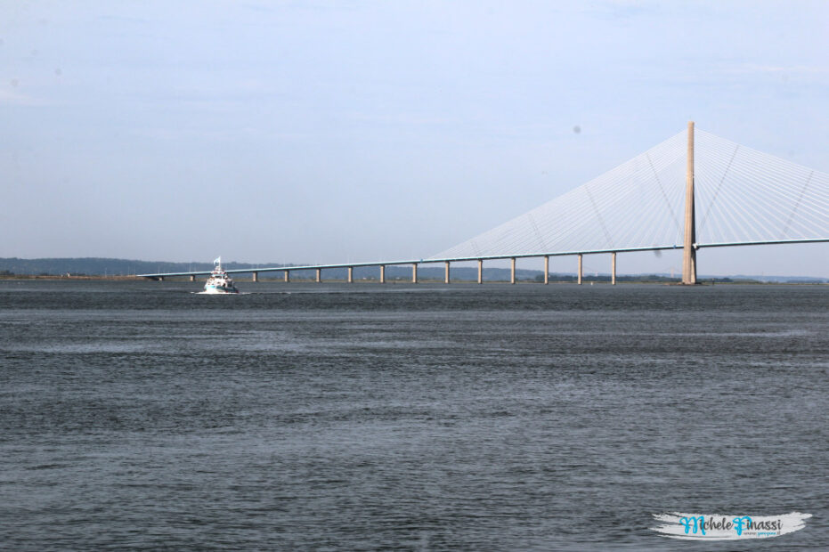 Transitiamo sopra il Ponte di Normandia, una incredibile opera archiettonica che unisce le due sponde dell’estuario della Senna, puntando verso il piccolo borgo sul mare.