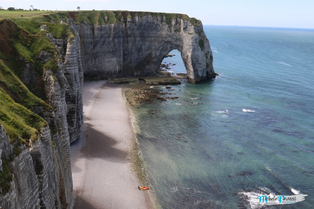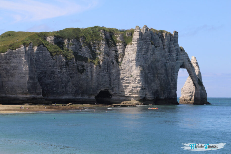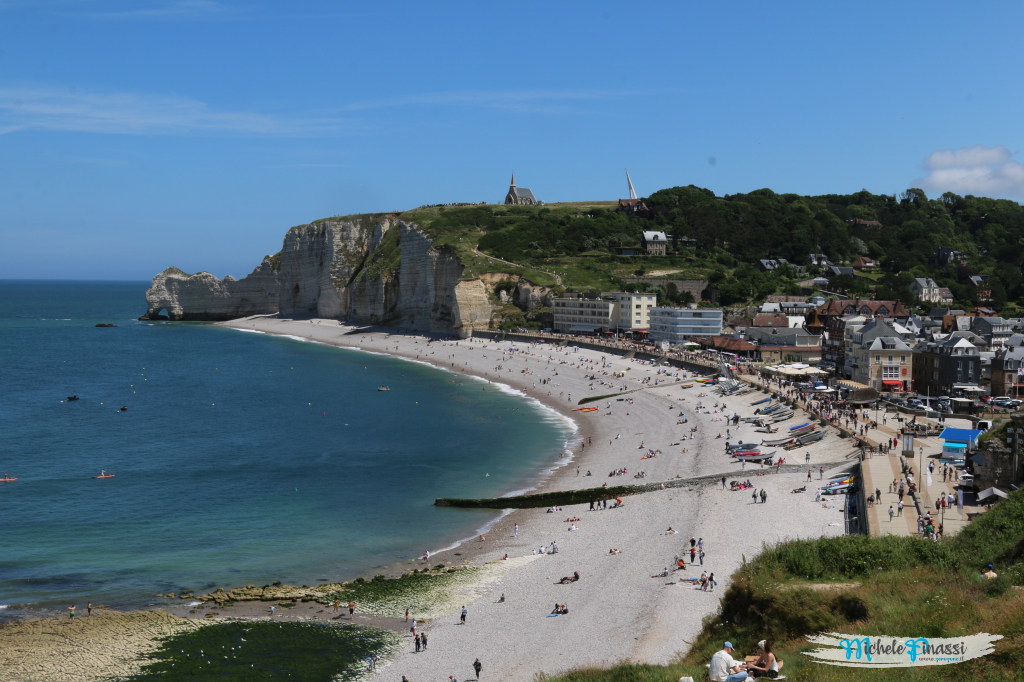 Étretat è molto bello, con una fantastica spiaggia di ciottoli circondata da due imponenti falesie bianche che regalano uno scenario da cartolina: la Falaise d’Amont sulla destra e la Falaise d’Aval sulla sinistra.