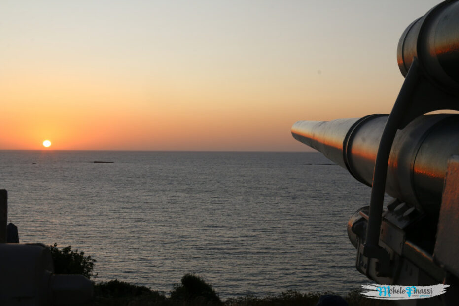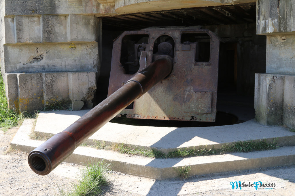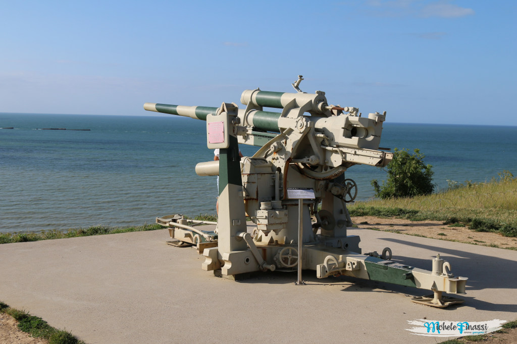 Il tramonto quassù arriva tardi ed anche se ormai è l’ora di cena, il sole è ancora alto e splendente. Una fresca brezzolina rende il clima piacevole, lontano dal caldo asfissiante della metropoli. Andiamo a gustarci lo spettacolo del sole che tramonta sulla Manica, seduti sulla collina sopra Arromanches-les-Bains, in compagnia di un pezzo d’artiglieria che da oltre 80 anni mantiene vivo il ricordo del D-Day.