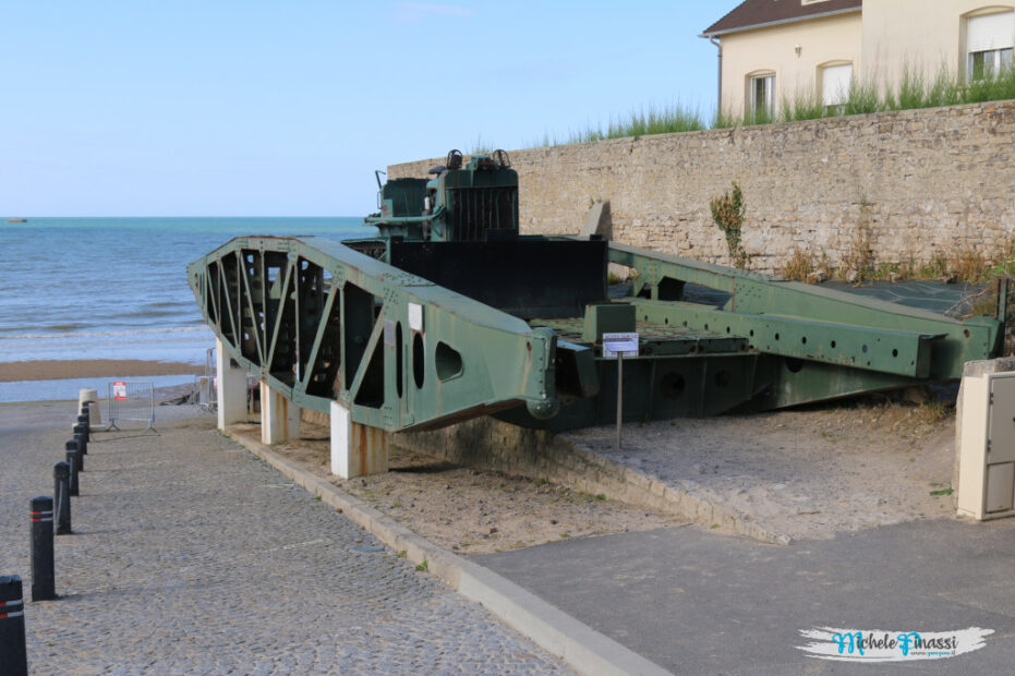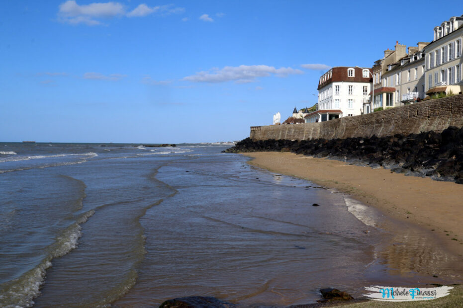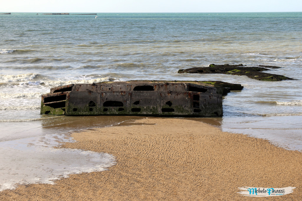 Lungo la strada in direzione Arromanches, mi fermo per una sosta veloce a Bernières sur Mer, dove c’è il memoriale canadese “The Queen’s Own Rifles” dedicato allo sbarco sulla Sword Beach. Sulla spiaggia, accando ad albergi e ristoranti, ancora oggi spiccano le imponenti fortificazioni tedesche a perenne memoria di quel tragico e sconvolgente periodo storico.