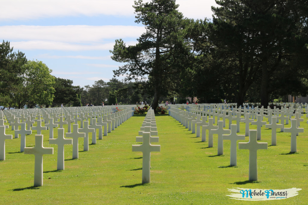 Prosegue la nostra avventura sulle spiagge dello Sbarco. Prima tappa: le batterie di Longues-sur-Mer, dove oltre ai possenti bunker in calcestruzzo sono ancora presenti i pezzi di artiglieria che presidiano quel tratto di costa. Anche oggi è una bella e piacevole giornata di sole, mentre ci dirigiamo verso Colleville-sur-Mer, luogo del memoriale americano dedicato alle migliaia di soldati caduti su queste terre. Il Cimitero Americano di Normandia è forse uno dei luogi più iconici, e anche uno dei più emozionanti: migliaia di croci bianche a ricordo dei soldati periti in battaglia. E’ stato anche il set di alcune scene del film “Salvate il Soldato Ryan“. Logisticamente, è molto ben organizzato, con un ampio parcheggio sia per auto che pullman che camper.